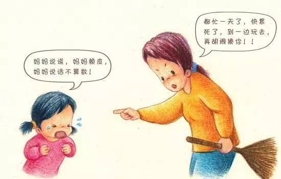 媽媽:(火了)都忙一天了,快累死了,到一邊玩去,再胡鬧揍你!!